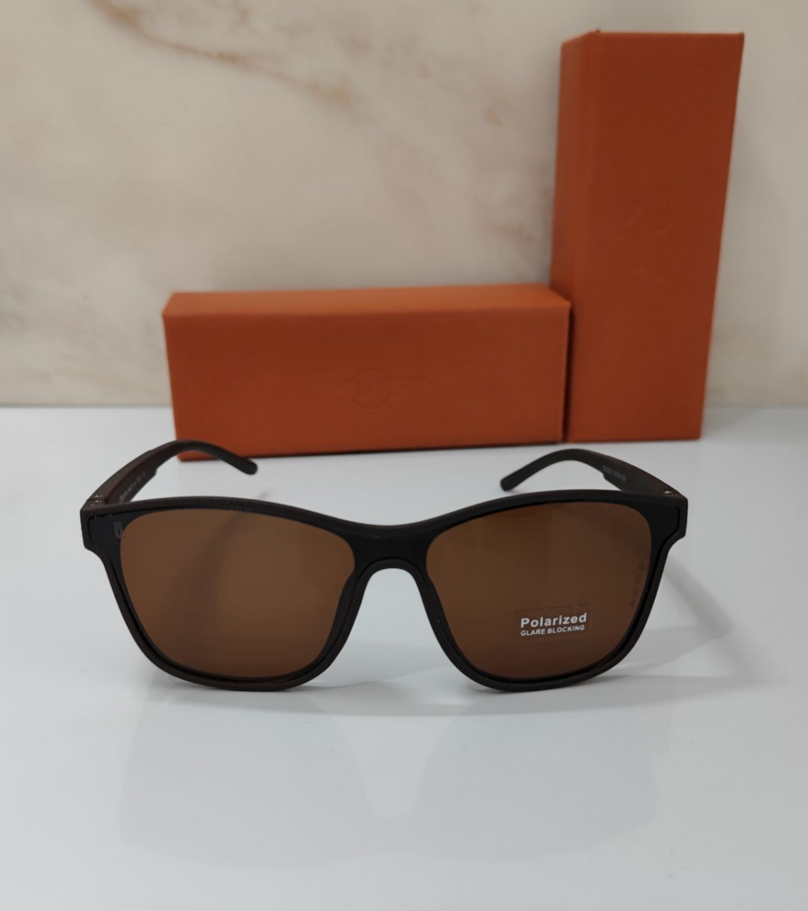 عینک مردانه مدل اوگا قهوه ای مات دسته سه پیچ فنر دار ضامن لنزuv400پلاریزه ضد خش نشکن شیک و زیبا مخصوص آفتاب رانندگی اصلی شرکتی درجه یک