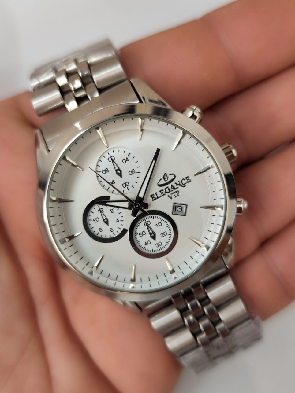 ساعتذمردانه مدل الگانس نقره ای شرکتی دارای روز شمار تقویم قفل کلیپسی شیک ضد حساسیت های کپی شرکتی درجه یک