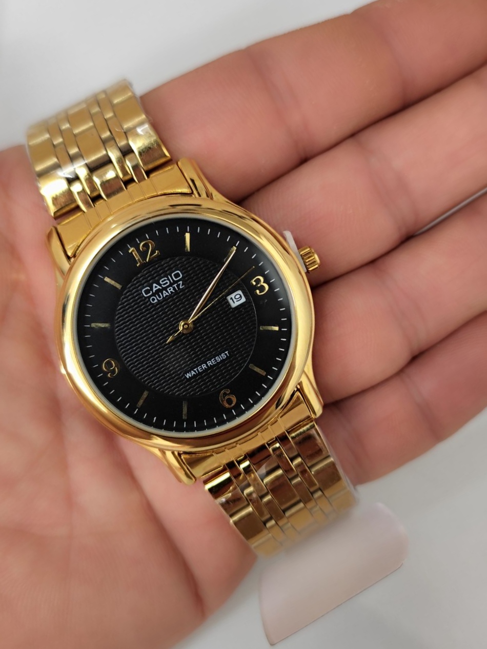ساعت مردانه مدل کاسیو طلایی شرکتی دارای روز شمار تقویم قفل کلیپسی شیک ضد حساسیت های کپی شرکتی درجه یک