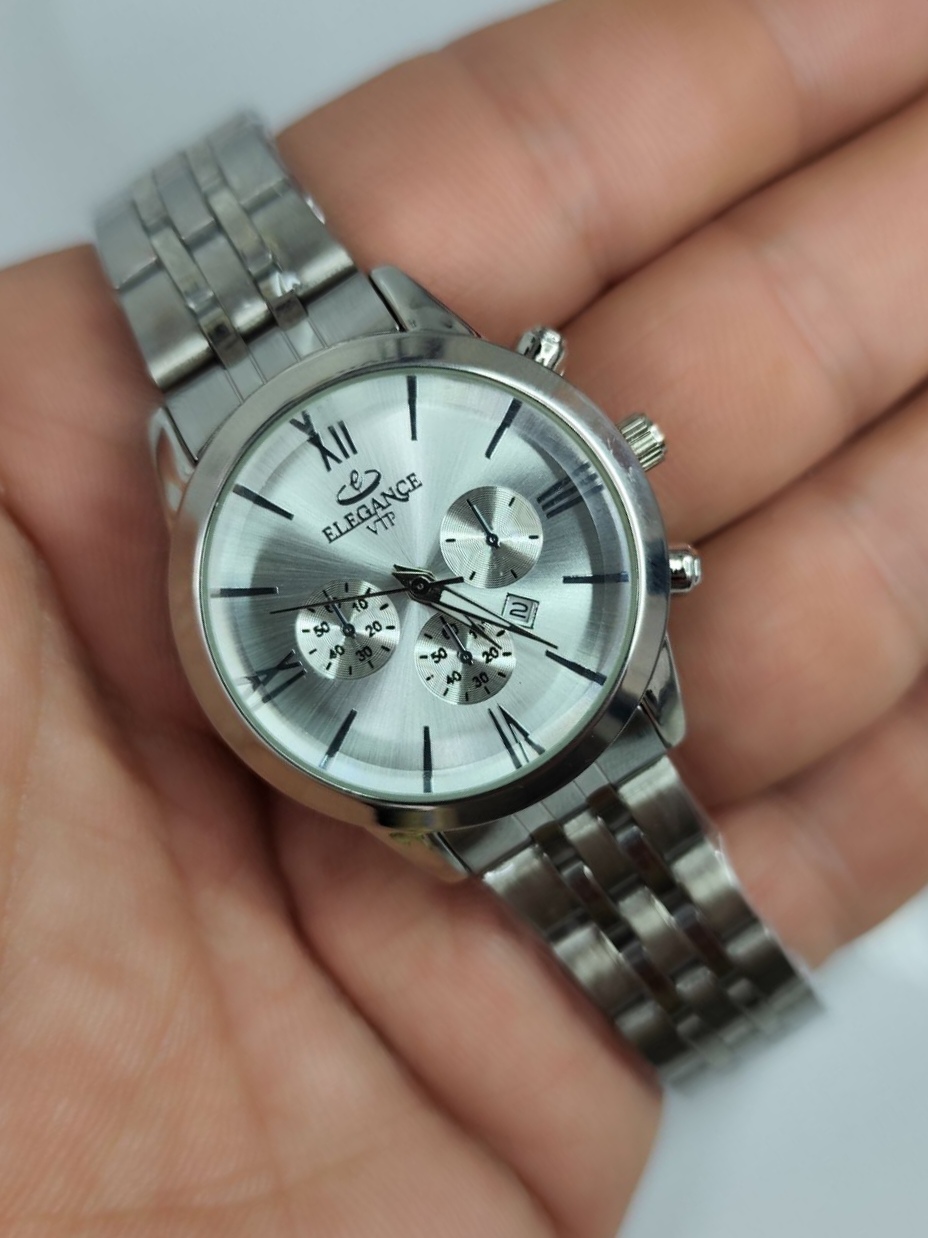 ساعت زنانه مدل الگانسvipفلزی شرکتی دارای تقویم روز شمار بدنه نقره ای قفل کلیپسی ضد حساسیت شیک و زیبا های کپی شرکتی درجه یک