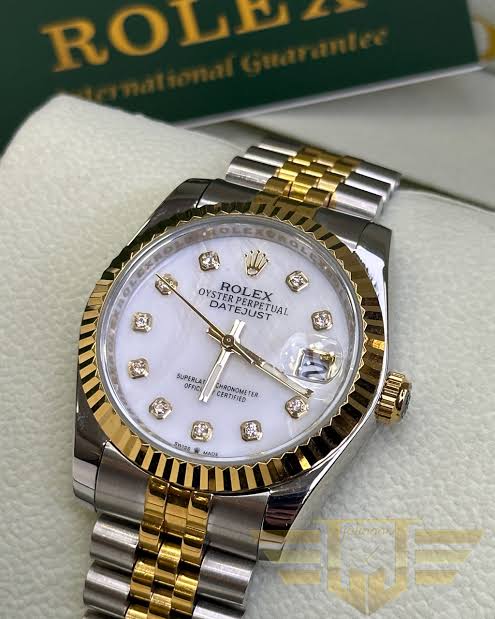 ساعت گردانه مدل رولکس نقره ای طلایی دارای روز شمار تقویم قفل سگکی شرکتی شیک و زیبا های کپی شرکتی درجه1