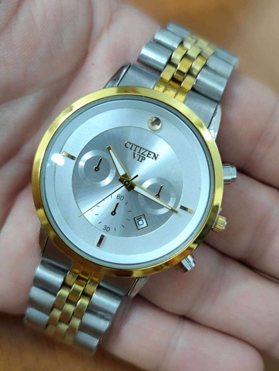 ساعت مردانه مدل سیتیزنvipنقره ای طلایی دارای روز شمار تقویم قفل کلیپسی شرکتی شیک و زیبا های کپی شرکتی درجه1