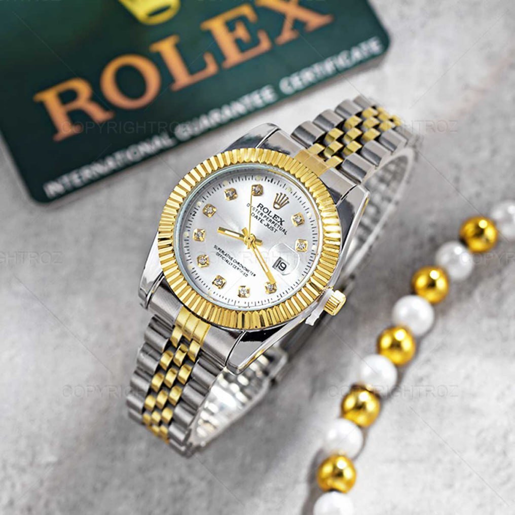 ساعت مردانه مدل رولکی نقره ای خط طلایی